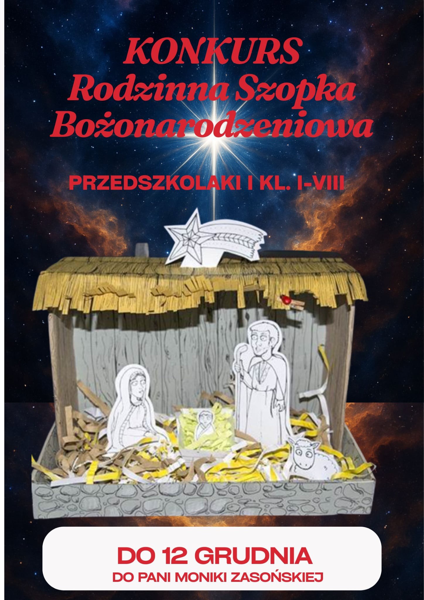 Prosimy o dostarczenie podpisanej szopki do 12 grudnia do pani Moniki Zasońskiej.